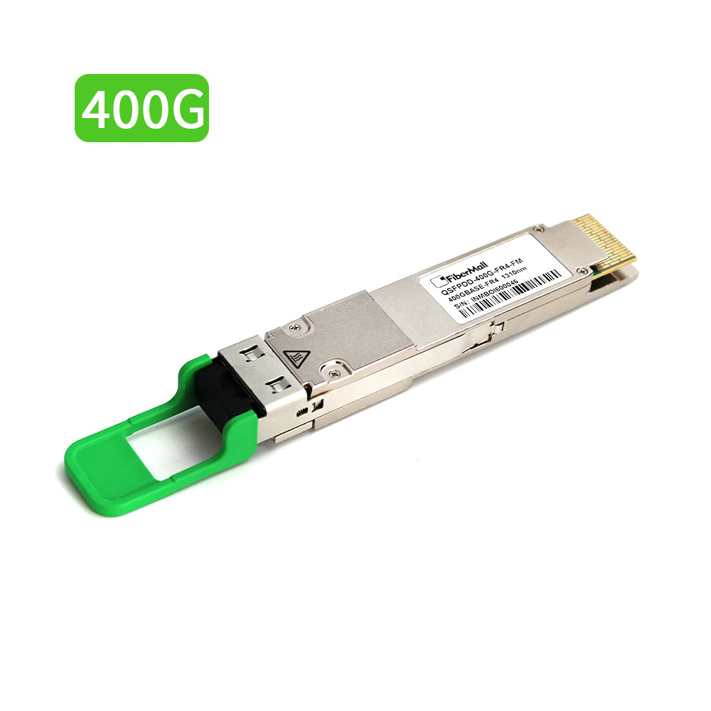 400GBASE-FR4モジュールは、LCデュプレックスコネクタを介してシングルモード(SMF)で最大2kmのリンク長をサポートします。IEEE 802.3bs、100Gラムダ MSAグループの400GBASE-FR4仕様、および400GAUI-8/CEI-56G-VSR-PAM4規格に準拠しています。400ギガビットイーサネットの信号は、CWDMグリッド光の4波長で伝送されます。4つの波長の多重化、多重解除はデバイス内で管理されます。