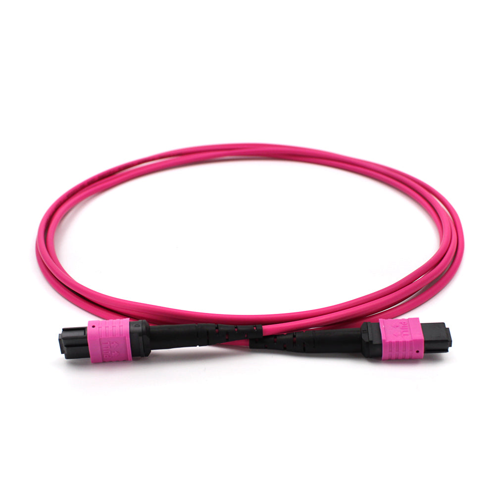 Fibermall製   MPO メス - MPO メス 12芯 OM4 マルチモード エリートトランクケーブル(12芯、タイプB、LSZH、マゼンタ)